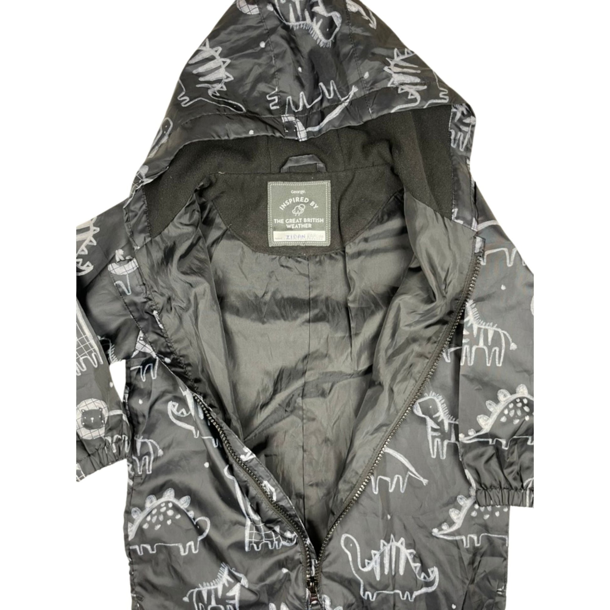 Praktischer Kinder-Overall mit lustigem Dinosaurier-Alloverprint in Grau-Weiß. Schützt vor Wind und Nässe, während dein Kind sich frei bewegen kann.
