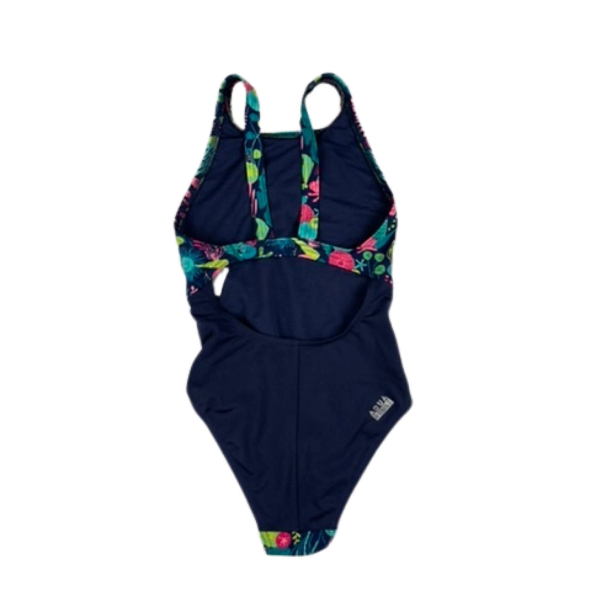 Sportlicher Badeanzug mit farbenfrohem Muster und Racerback-Trägern.